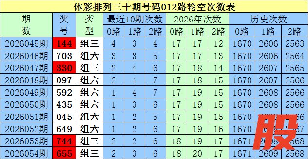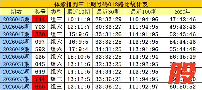 开奖回顾:排列三第2026054期奖号为:655,号码012路比为1:0:2。